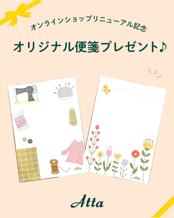 只今リニューアルを記念し、購入された方にAttaオリジナル便箋をプレゼント中です。