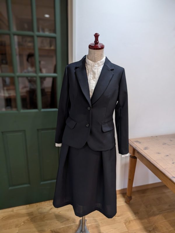 新社会人おめでとう!の気持ちをたくさん込めて縫いました。昨日の夜、スーツを試着したMちゃんが、アトリエでぴょんぴょん跳んで、やった〜!可愛い〜!と喜んでくれました。